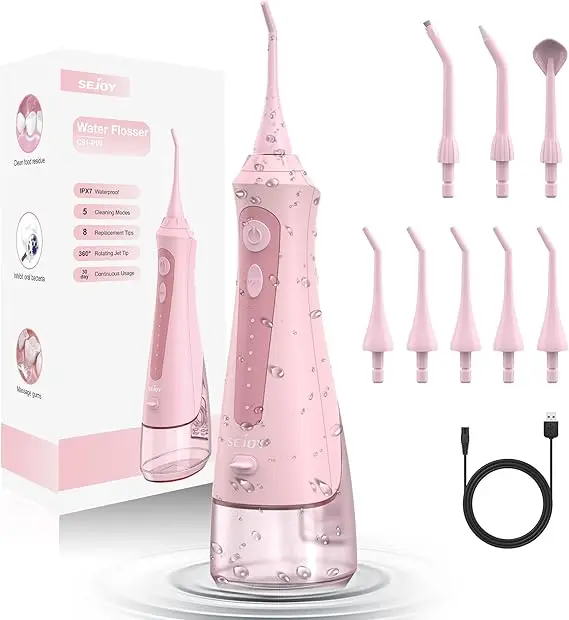Featuring multiple pressure modes and a lightweight, ergonomic design, the SEJOY Water Flosser is perfect for beginners and seasoned users alike. Its large-capacity water tank provides continuous flossing time, while the rechargeable battery ensures cordless convenience at home or on the go.